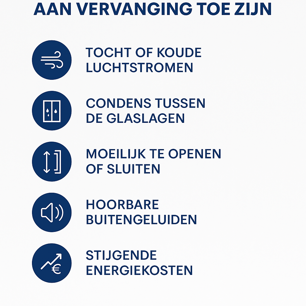 Goede ramen zorgen niet alleen voor licht en uitzicht, maar ook voor comfort, isolatie en een lagere energiefactuur. Toch gaan ramen niet eeuwig mee. Na 15 à 25 jaar beginnen de eerste problemen vaak zichtbaar (of voelbaar) te worden. Herken je één of meerdere van onderstaande signalen? Dan is het wellicht tijd om je ramen te laten vervangen.