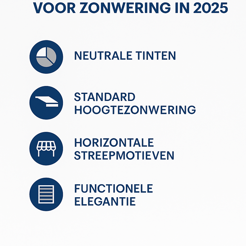Naast kleur is ook het materiaal in evolutie. Zonwering in 2025 combineert duurzame stoffen met UV-bestendige coatings en slimme automatisatie. Denk aan screens die automatisch reageren op zonlicht of wind, gekoppeld aan domotica. De trend? Slimme zonwering die comfort en esthetiek perfect combineert.